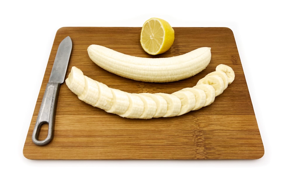 Slice bananas and toss in lemon juice.